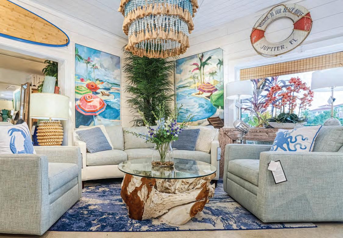 Experience the freshness of The Summer House, a new and beautifully decorated furniture showroom located in Jupiter, Florida. We hope you will visit our newly renovated store featuring living, dining, and bedroom furniture to meet your home needs. The Summer House is complete with unique and carefully selected pieces featuring stylish coastal indoor living styles. To further complement your home, we offer accessories to enhance the natural beauty and surroundings to the fullest. Guests are able to custom order or select items tastefully displayed on the oor.