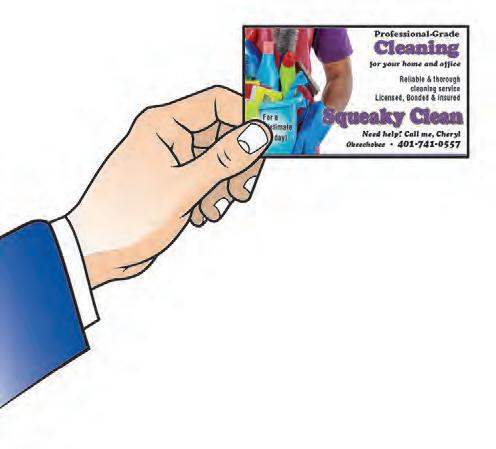 34 VOL. 551 J Copyrighted© My Living Magazines. 2022 All Rights reserved. To Advertise call 863-623-3219 Need More Coupons - OkeechobeeLiving.com PROFESSIONAL BUSINESSDirectory New Construction • Additions • Remodels • Door & Window Upgrades Siding • Screen Rooms • Carports • Florida Rooms 2207 SE Hwy 441, Okeechobee, FL 34974 Lic #CGC059988 Residential • Commercial 1-863-467-8877 FREE Estimates www.btcbuilders.com 772-882-0644 T&M HANDYMAN SOLUTIONS LLC NEED A HANDYMAN? NO JOB TOO SMALL FLOORING • PAINTING • INTERIOR REMODEL • CABINETRY Registered & Insured • HANNAFORD67@GMAIL.COM Veteran Owner/Operator Tom Hannaford FREE ESTIMATES ON ALL SERVICES Professional-Grade Cleaning for your home and office Squeaky Clean Reliable & thorough cleaning service Licensed, Bonded & insured For a FREE Estimate Call Today! Need help? Call me, Cheryl Okeechobee • 401-741-0557 STAINING • REPAINTING • PRESSURE WASHING RESIDENTIAL & COMMERCIAL INTERIOR/EXTERIOR PAINTING FREE ESTIMATES! Owner AlexNunez PassionPaintLLC@gmail.com Licensed & Insured HOOVES & PAWS PET SITTING 772-812-7306 CALL LINDA FOR MORE INFO. Call today and receive a FREE SHOWER PACKAGE PLUS $1600 OFF With purchase of a new Safe Step Walk-In Tub. Not applicable with any previous walk-in tub purchase. Offer available while supplies last. No cash value. Must present offer at time of purchase. CSLB 1082165 NSCB 0082999 0083445 1-855-517-1892 SPECIALOFFER Prepare for power outages today WITH A HOME STANDBY GENERATOR *To qualify, consumers must request a quote, purchase, install and activate the generator with a participating dealer. Call for a full list of terms and conditions. REQUEST A FREE QUOTE CALL NOW BEFORE THE NEXT POWER OUTAGE (866) 643-0438 $0 MONEY DOWN + LOW MONTHLY PAYMENT OPTIONS Contact a Generac dealer for full terms and conditions FREE 7-Year Extended Warranty* A $695 Value! POWER ELECTRICAL SERVICES Servicing Okeechobee & The Treasure Coast New Construction /Remodel Service Change/Service Upgrade Repairs/Service Calls Home EV Charger (Electric Vehicles) Licensed & Insured EC13011531 MARIO LOPEZ Project Manager (863) 532-3193 mario@mcppower.com www.mcppower.com