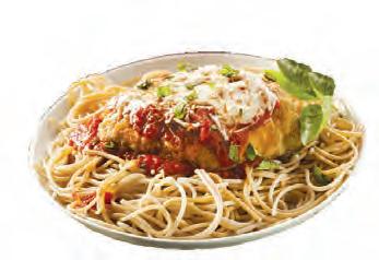 Topped with melted mozzarella cheese & homemade tomato sauce, served with spaghetti or penne pasta