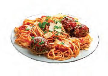 Spaghetti or penne pasta & homemade marinara with meatballs or sweet Italian sausage