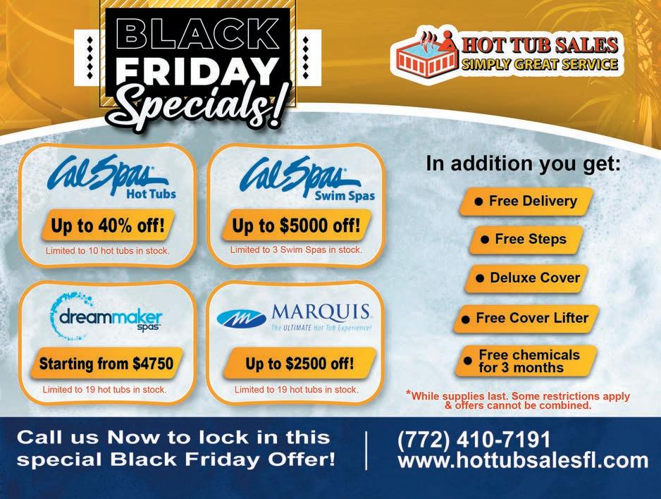 VOL. 555 M 51 Copyrighted© My Living Media. 2022 All Rights reserved. To Advertise call 772-247-6849 772-778-8936 We Service All Makes & Models Let us help you relax this holiday season with a smooth running air conditioning system! Call today to schedule your service to ensure a comfortable holiday season. w.a.c. MONTHS INTEREST 0 % 60 $5995 $65 SERVICE CALL Winter Tune-Up with Any Repair and 21-point Inspection Not valid with any other offers or discounts. Must present MLM Coupon® at time of purchase. Expires 12/19/22 Not valid with any other offers or discounts. Must present MLM Coupon® at time of purchase. Expires 12/19/22 Not valid with any other offers or discounts. Not valid with previous purchases. Must present MLM Coupon® at time of purchase. Expires 12/19/22 $100 VISA GIFT CARD with Any A/C Purchase FOR MORE SPECIALS www.FREEDOMAIRHEAT.com OR EMAIL service@freedomairheat.com Lic. #CAC1814448 Lic. #CFC057957 We still have a lot to be thankful for!