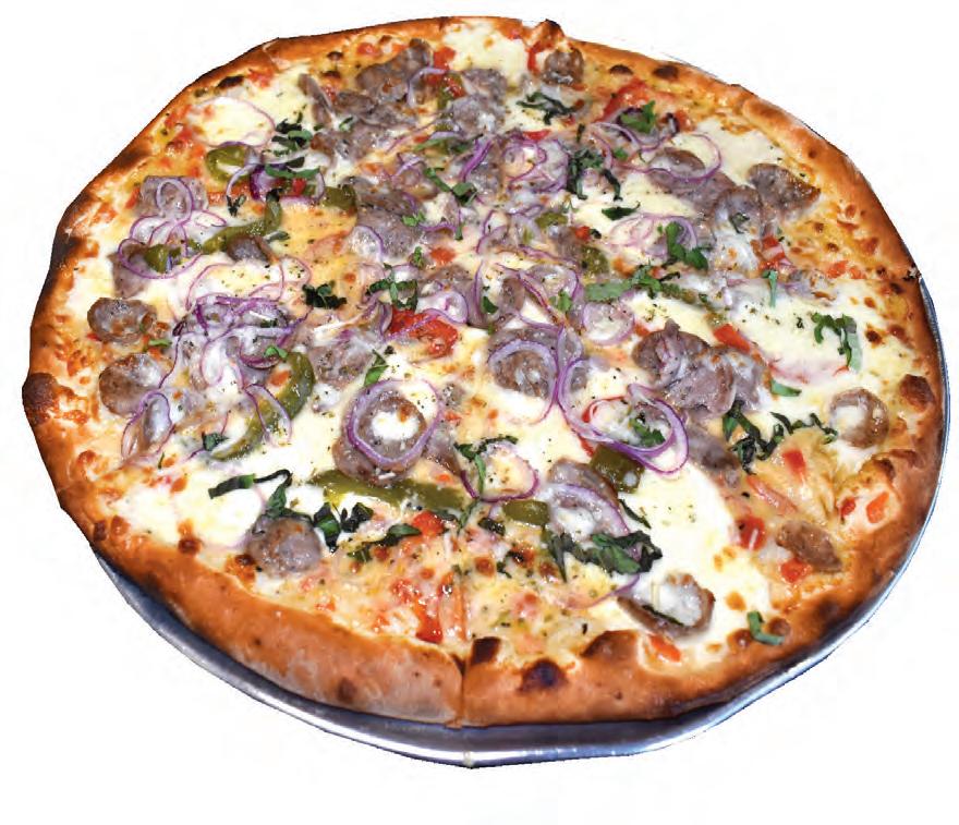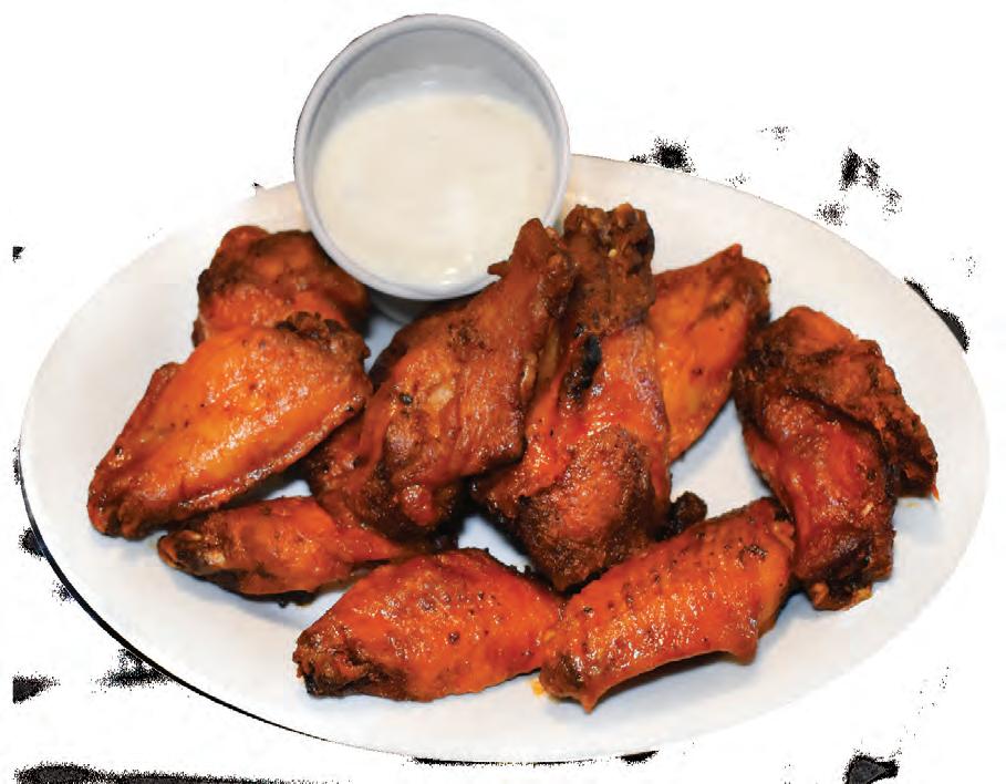 Begin with an appetizer — fresh, made-to-order chicken wings (10 for $16.99; 20 for $25.99), which are available in a variety of avors. Abby and I chose the classic mild version, which is perfect for anyone who likes just a hint of heat. Covered in a dry rub seasoning versus a messy wet sauce, the meaty mild wings are baked, then fried, so their deliciously crispy exterior is complemented by a juicy, tender interior. “It can be dif cult to nd good wings,” Abby