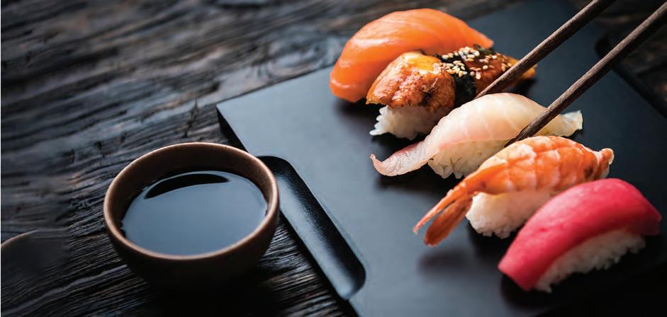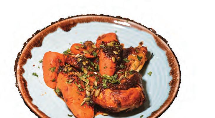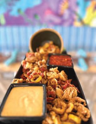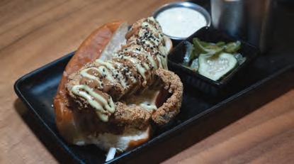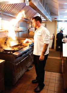 Another excellent option is one of the most popular items on the menu: Hudson’s Snapper ($38). e generous plate includes a huge piece of fresh, tempura snapper with coconut jasmine rice, baby bok choy, bell peppers, mango jalapeno coulis, and spicy coconut aioli. e mild sh rst pops with bites of spice, then is balanced by the avor of the subtly- oral rice. Paul really
