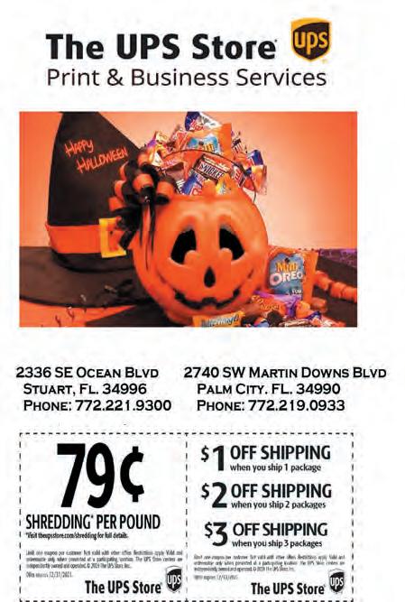 96 VOL. 562 M Copyrighted© My Living Media. 2023 All Rights reserved. To Advertise call 772-247-6849 Need More Coupons - MyLivingMedia.com NEXT DAY GUTTERS WE FINISH THE JOB IN ONE DAY! 561-698-7085 561-685-7311 $300OFF Complete House New Gutters FREE SAME DAY ESTIMATES WE WILL BEAT ANY WRITTEN ESTIMATE! • NEW GUTTERS • 6” & 7” GUTTERS • GUTTER GUARDS • GUTTER SERVICE • NEVER CLEAN YOUR GUTTERS AGAIN! GUTTER GUARDS $1OFF SHIPPING $2OFF SHIPPING $3OFF SHIPPING Limit one coupon per customer. Not valid with other offers. Restrictions apply. Valid and redeemable only when presented at a participating location, The UPS Store center are independently owned and operated. © 2018 The UPS Store, Inc. Offer expires 3/30/23 When you ship 1 package When you ship 2 packages When you ship 3 packages 2336 SE Ocean Blvd Stuart, Fl. 34996 Phone: 772.221.9300 2740 SW Martin Downs Blvd Palm City, Fl. Phone: 772.219.0933 NEED SHIPPING? WE’VE GOT YOU COVERED! Palm City Sod_0091-5319_LG562 772-214-3780 5350 SW Martin Hwy • Palm City FL 34990 SOD INSTALLATION, BAHIA, FLORATAM, SEEDING, & MULCHING Since 1977 With this MLM coupon. Cannot be combined with any other offer. Prices subject to change. FLORATAM $ 225 MUCK BASED 500 sf Rates for Delivery Only. PALLET 450 sf BAHIA $ 125 Rates for Delivery Only. WWW.PALMCITYSOD.US With this MLM coupon. Cannot be combined with any other offer. Prices subject to change. Now Offering Delivery of Various Types of Mulch by the Pallet