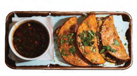 In the mood for an enchilada? Select the short rib one ($19), which includes a cheese blend, salsa roja, rice, and beans. e portion is very generous, so there’s no way you’ll leave the restaurant hungry! Abby raved about it, saying, “It’s amazing that they’re able to get so much avor into the meat!”