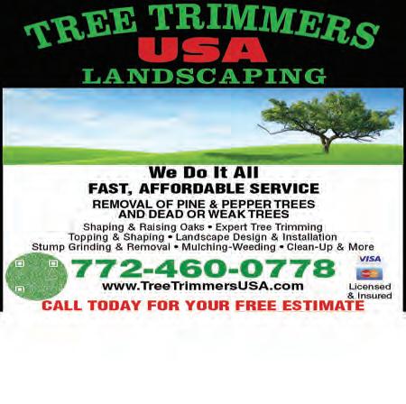 VOL. 562 M 107 Copyrighted© My Living Media. 2023 All Rights reserved. To Advertise call 772-247-6849 Need More Coupons - MyLivingMedia.com 1025 SW Martin Downs Blvd., Suite 102B, Palm City 772-758-7959 * On jobs under $5,000 ANY JOB OVER $2,000 ESTIMATES NO DEPOSIT REQUIRED* $200 OFF FREE • Residential Interior/Exterior Painting • Commercial Interior/Exterior Painting Must present MLM coupon at time of estimate. Expires 3/31/23 Must present MLM coupon at time of estimate. Expires 3/31/23 Licensed & Insured Call Thomas, Martha & the Tomcat Team! 772-634-6104 • Trees Trimmed • Hazardous Tree and Limb Removal • Stump Grinding • Bush & Lot Clearing • Tractor and Excavator Work • Hauling & Disposal • 14ft. Roll-off Cans Available for Trash Serving the Treasure Coast 20% Off All Services up to $500 Expires 3/31/23 FREE ESTIMATES TOMCAT TREEWORK Kitchen Liquidators THE KITCHEN & BATH SPECIALISTS New Installations • Kitchens & Baths • Granite Cabinets & Floors 772-272-8676 www.kitchenliquidatorsflorida.com Find us on Facebook at KITCHEN LIQUIDATORS For More Pictures VISIT OUR SHOWROOM AT 4304 US1, FORT PIERCE Kitchens for ANY Budget FREE Design Consultation WE BEAT ANY WRITTEN ESTIMATE 20% OFF Any New Order Exp. 3/31/23 Monday - Sunday 10am - 6pm by Appointment Only