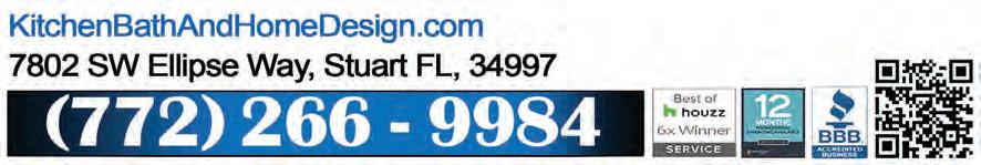 VOL. 562 M 87 Copyrighted© My Living Media. 2023 All Rights reserved. To Advertise call 772-247-6849 Need More Coupons - MyLivingMedia.com 772-232-8799 TW SPECIAL FREE BLANCO VALEA SINK With the purchase of 8 cabinets or more. *Restrictions apply with this MLM coupon. Must mention at time of ordering. Expires 3/30/23 Kitchen & Bath Remodeling Innovative Designs, Exceptional Craftsmanship - Unmatched Integrity Get the TRADEWINDS stamp of class & craftsmanship today! Call Today for a Free Personal Consultation with one of our designers including 3-D models and renderings! WWW.TRADEWINDSCABINETS.COM 2365 SE Federal Hwy. Stuart, FL (Located between TJ Maxx & Home Goods) Mon-Fri 9am-5pm, Sat & Sun By Appointment Lic# MC1900120 Family Owned & Operated