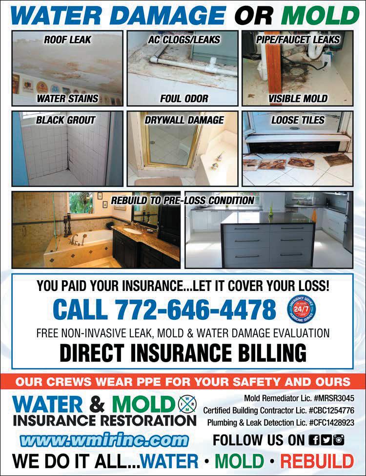 VOL. 553 N 53Copyrighted© My Living Media. 2022 All Rights reserved. To Advertise call 772-247-6849 Need More Coupons - MyLivingMedia.com WATER DAMAGE FROM IAN? ASK US ABOUT DIRECT INSURANCE BILLING DID YOU HAVE A RECENT LEAK? YOU MAY HAVE MOLD! Initial Service With this MLM coupon. Exp 11/25/22 RESPONSE TEAM WHEN DISASTER STRIKES, WE’VE GOT YOUR BACK! EMERGENCY EMERGENCY EMERGENCY 772-362-2797 • Roof Tarping • Water Damage Clean-up • Dry Out • Disinfecting/Sanitizing • Debris Removal • Water/Mold Remediation • Remodeling 15% OFF