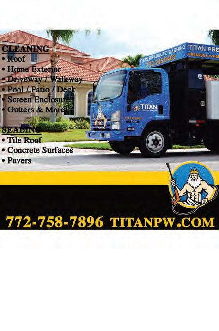 VOL. 551 O 61Copyrighted© My Living Media. 2022 All Rights reserved. To Advertise call 772-247-6849 Need More Coupons - MyLivingMedia.com VELASQUEZ TREE SERVICE Licensed Insured772-261-1255 10 % OFF Limited time offer. Must present this MLM coupon. Expires 10/31/22 FREE ESTIMATES Monthly Maintenance Service Contract • Tree Trimming • Lawn Maintenance • Hedge Trimming • Tree Removal • Clean up Sod, Mulch, & Rocks • Monthly Service • WE DO IT ALL! Call Edgar Today! SPECIAL SENIOR DISCOUNTS! Of $1,000 or more *Call for more info $150off $99off $75off MIN. 500 SQ. FT. MIN. 1500 SQ. FT. • Residential & Commercial • Interior/Exterior • Wallpaper Removal • Drywall Textures • Waterproo ng • Brick Paver Sealing Craig 772-291-5553 www.CraigHanlonPainting.com PAINTING AND PRESSURE CLEANING 1 ROOM PAINTING ANY SERVICE FREE ESTIMATES BRICK PAVER SEALING For Our Complete Services, Extensive Photo Galleries, & Customer Reviews Visit Us at www.dbhiproducts.com 772-353-0140 Since 2006 LICENSED & INSURED, STATE CERTIFIED CRC1330776 Wood Rot Repair 30-YEAR JAMES HARDIE WARRANTY FIBER CEMENT SIDING - THE ABSOLUTE BEST FOR WOOD FRAME HOMES 10% Off YOUR PROJECTS Up to $500 • With this MLM coupon. Limited time offer. Because Rot Never Sleeps SPECIAL FINANCING AVAILABLE – CALL FOR DETAILS –We Specialize in... • Sof ts & Fascia • Hardie Siding • Fiber Cement Siding • PVC Moulding FREE ESTIMATES 5-STAR REVIEWS