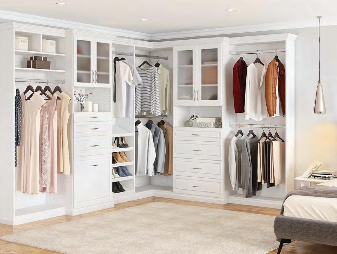 When you’re in the mood for something modern and bold, the Brio Collection™ answers the call. Sleek corners and clean edges surround the system of at-front doors and drawers. Display your carefully curated wardrobe against a clean nish for a timeless look.