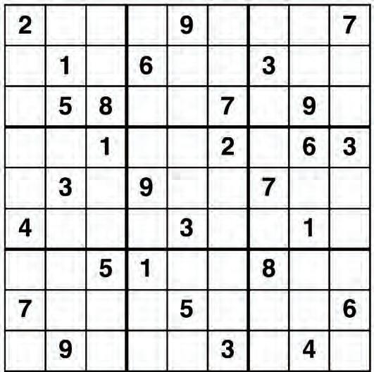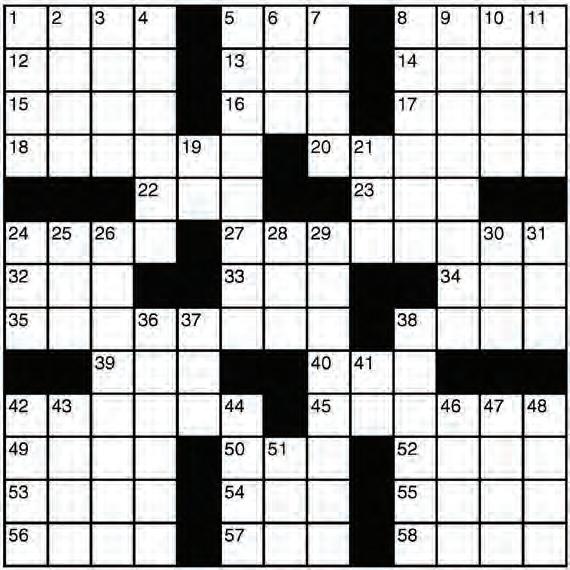 32 VOL. 551 Q Copyrighted© My Living Media. 2022 All Rights reserved. To Advertise call 772-247-6849 Need More Coupons - MyLivingMedia.comPUZZLE PAGE SUDOKU PUZZLE PUZZLE PAGE CROSSWORD ACROSS 1 Red Planet 5 Dandy guy 8 Espy 12 Part of Q.E.D. 13 Lennon’s lady 14 Frau’s mate 15 Mater lead-in 16 Old Oldsmobile 17 Notion 18 Head honcho 20 Desolate 22 Presidential nickname 23 Dol. fractions 24 “Toodle-oo!” 27 Shun liquor 32 Actress Thurman 33 Hostel 34 Pie -- mode 35 Gifted 38 “Roots” author Haley 39 Altar af rmative 40 Sushi sh 42 Demand 45 Zealous 49 Gestation location 50 Gun the engine 52 Black-and-white cookie 53 Spoken 54 “As I see it,” to a texter 55 Cold War initials 56 Prime-time hour 57 Owned by us 58 -- good example DOWN 1 Potatoes partner 2 Folksinger Guthrie 3 Wheelchair access 4 Sports venues 5 “Never mind!” 6 Single 7 Crawl space? 8 Japanese faith 9 Statue base 10 Baseball’s Hershiser 11 Tea carrier 19 Letters of approval? 21 Calendar abbr. 24 Boy king 25 Docs’ org. 26 Amulet 28 Away from WSW 29 Try 30 Pub order 31 Remiss 36 Safe to consume 37 Refusals 38 Novelist Huxley 41 Hectic hosp. area 42 Victor’s cry 43 Sushi wrapper 44 Half a sextet 46 Gaelic 47 Tree home 48 Afghanistan’s -Bora region 51 Outback bird Solutions See Page 34
