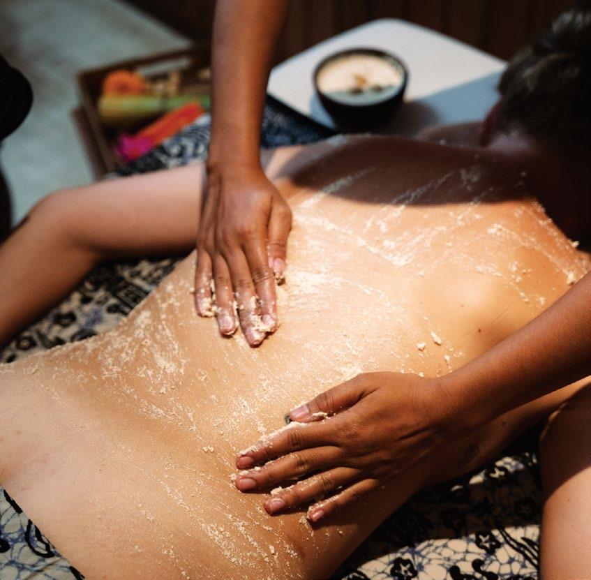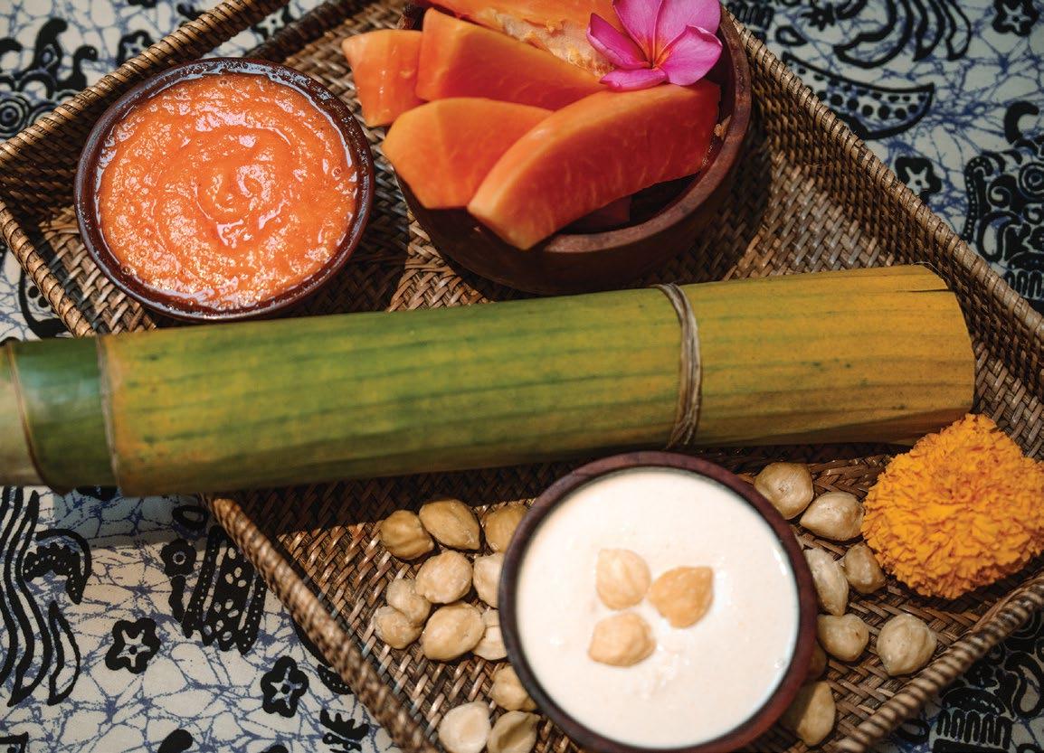 This is a treatment designed to smooth and hydrate the skin with natural tropical ingredients. It begins with a gentle exfoliation using grated candlenut and oil.