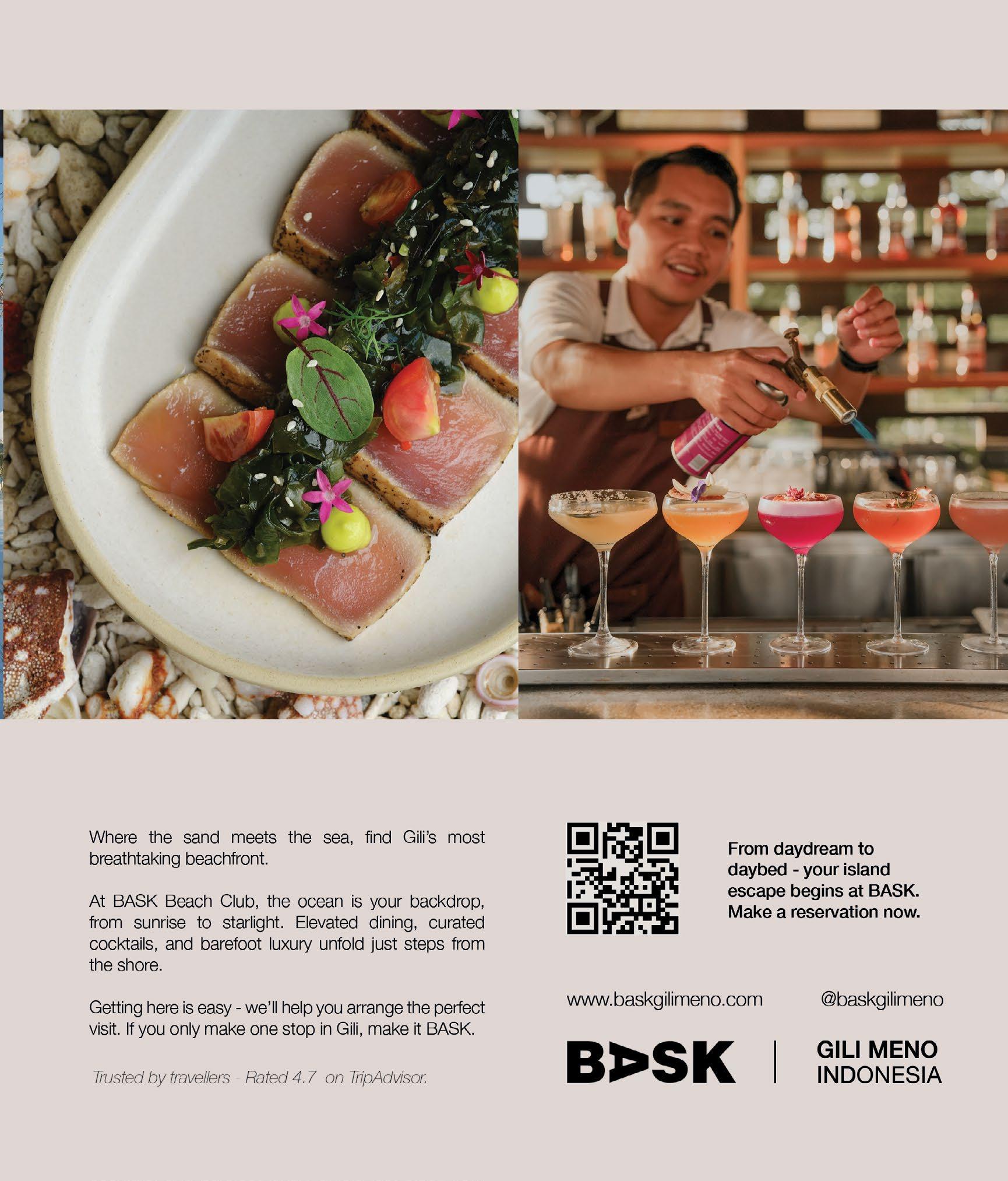 For serious sushi lovers, head to Yanai, while Chef Pak Made tells us all about new Gili T steakhouse restaurant The Cutting Board. We also sat down with Holly Macleod of Blue Marlin Dive who runs the IDC instructor development courses. She has been in the Gilis for more than a decade. Also, learn all about SAO Spa at Gili Trawangan’s Cocana Resort and their pampering treatments.