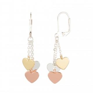 Every detail of the Three Hearts earrings is thoughtfully curated, from the shape of the hearts to the finish of the metals used The heart motif, a classic symbol universally associated with love, affection, and unity, is given contemporary relevance through the trio of colors Silver offers understated sophistication, gold adds a touch of luxury, and rose hues bring a hint of romantic vibrance.