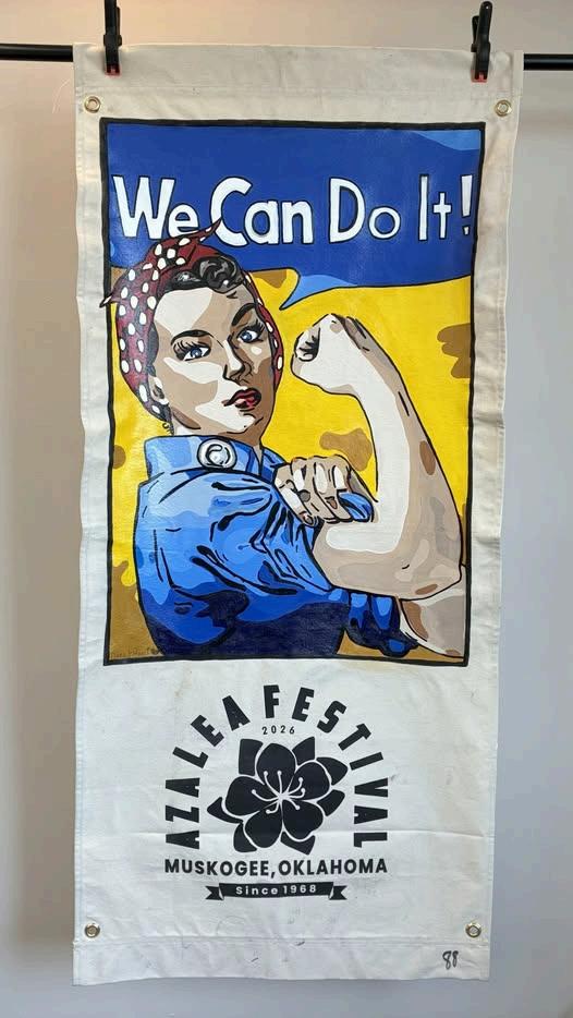 100 locally painted Azalea Festival banners displayed acrossthecity.
