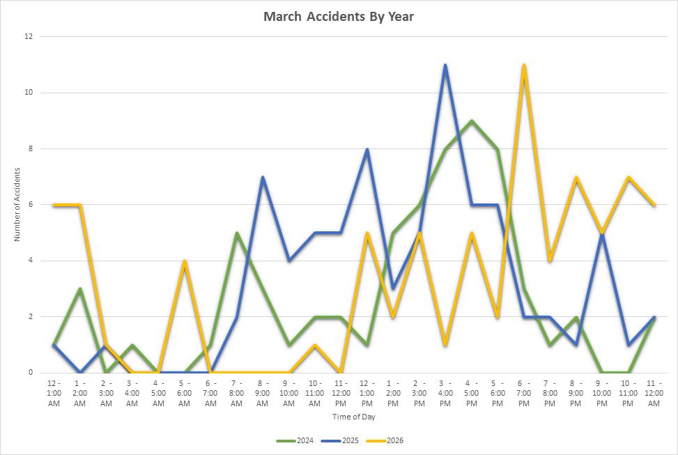 MPD responded to 2,213 calls for service in March 2026, a 6.7% decrease from February 2025, and notably lower than February 2024 levels.