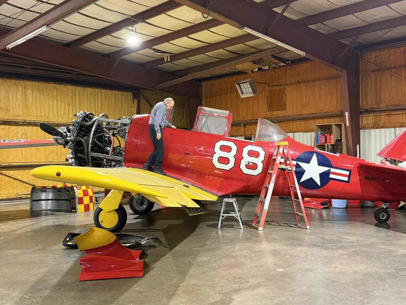 DavisFieldAviation’smechanicisperformingtheannualinspectiononaNorth American Harvard T-6, fondly referred to as Big Red. These thorough checks ensure the aircraft remains safe, robust, and prepared for countless more adventuresintheskies.
