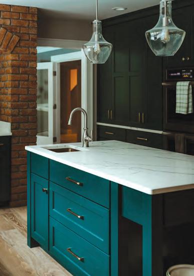 Kitchen designer Meagan McLain, her hus band and their three children live on their “hobby” farm on the east side of Traverse City. With two dozen cows, eight pigs and fields of corn and veggies, however, some folks might call it more than a hobby. This year she and her children canned more than a hundred jars of veggies and made soups and other dishes from what they harvested. Needless to say, while McLain can and has designed kitchens in a wide range of styles—all of them beauti ful and functional—she is more than at home with the modern farmhouse look.