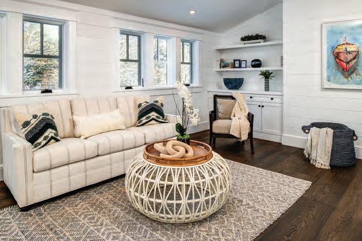 When justin and liz gusick purchased a lot on Walloon Lake they were so excited they couldn’t think much past what the porch would look like—and what the view of the lake would look like from it. No worries. The Gusick’s Realtor, Pat Leavy, had them covered. Sensing the couple’s sensibilities— they wanted a classic lake cottage that looked as though it had stood on the site for a half-century—Leavy connected them with architect Greg Presley and builder Nick Fettig of Harbor View Custom Builders. Those connections in turn led to kitch en and bath designer Jill Brecheisen of Kitchens by Design and interior decorator Jennifer Keiser of The Quiet Moose. As the Gusicks were to find out, Leavy had helped them assemble a roster of Petoskey-area design-and-build all-stars.