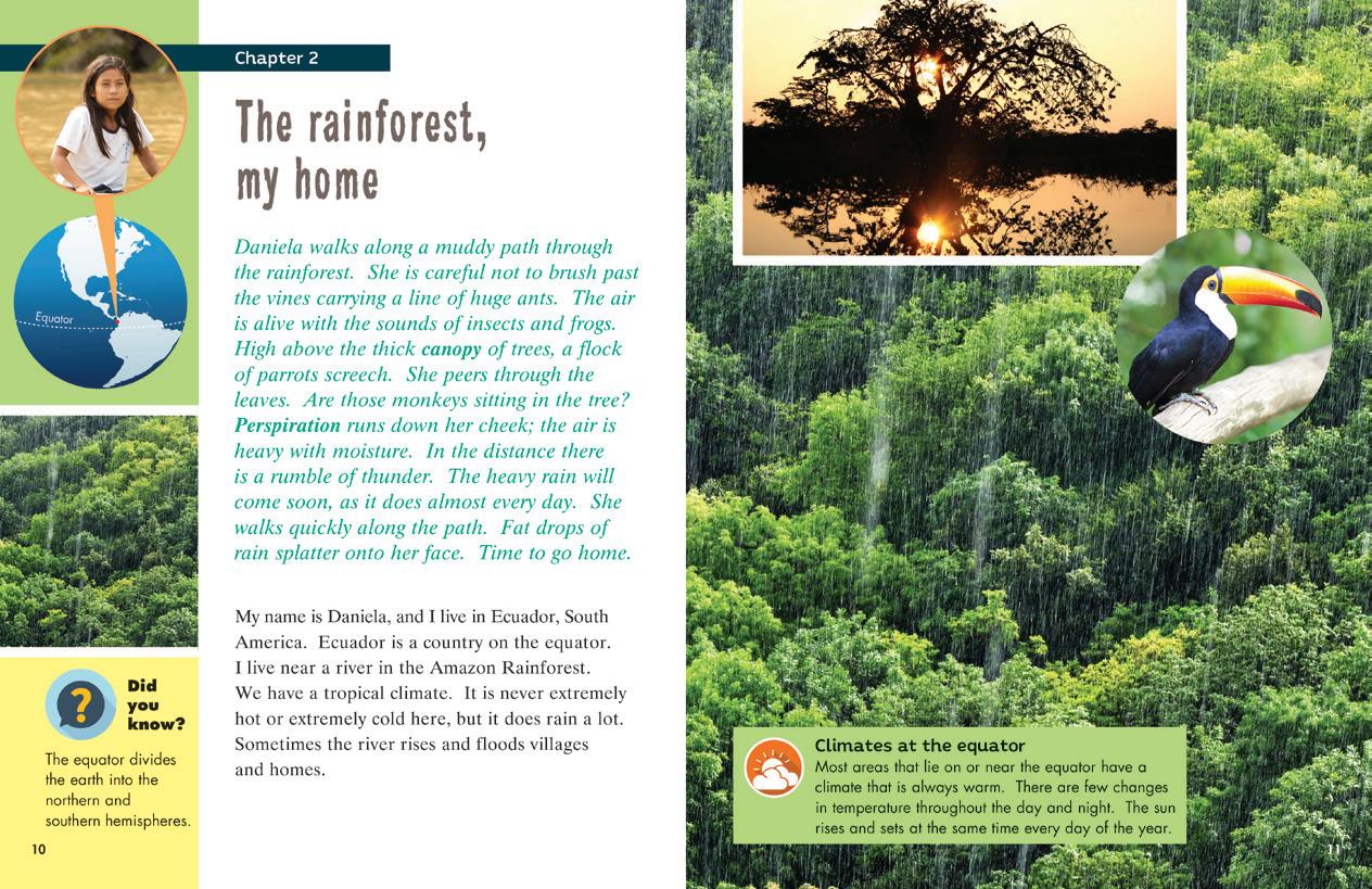 Our stellar lineup of programs includes the awardwinning Flying Start to Literacy™ and Despegando hacia la lectura ®. Paired texts—one fiction and one informational—are linked by their common use of content vocabulary and the same big idea. WorldWise: Content-based Learning™ and ExploraMundos™ provide engaging content that is fully aligned with the Next Generation Science Standards and C3 Social Studies Outcomes foreach grade. Our four flagship programs provide title-for-title equity in English and Spanish, making them ideal for dual-language instruction of any type.