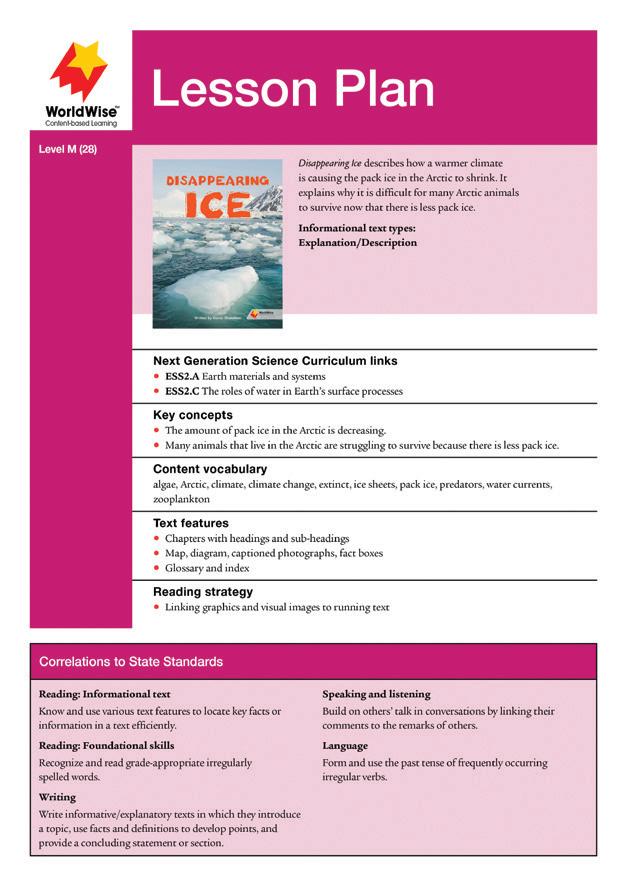 For learning aligned with Next Generation Science Standards and C3 Social Studies Outcomes, the platform also includes all student texts from WorldWise: Content-based Learning™ (see pages 44-57) and ExploraMundos™ (see pages 90-103).