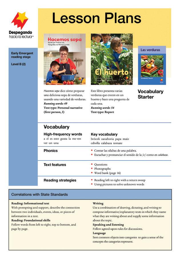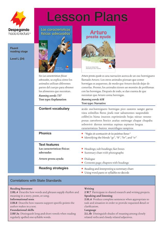 This expansive collection is a perfect choice for dual-language schools by matching Flying Start to Literacy™ to its Spanish counterpart, Despegando hacia la lectura