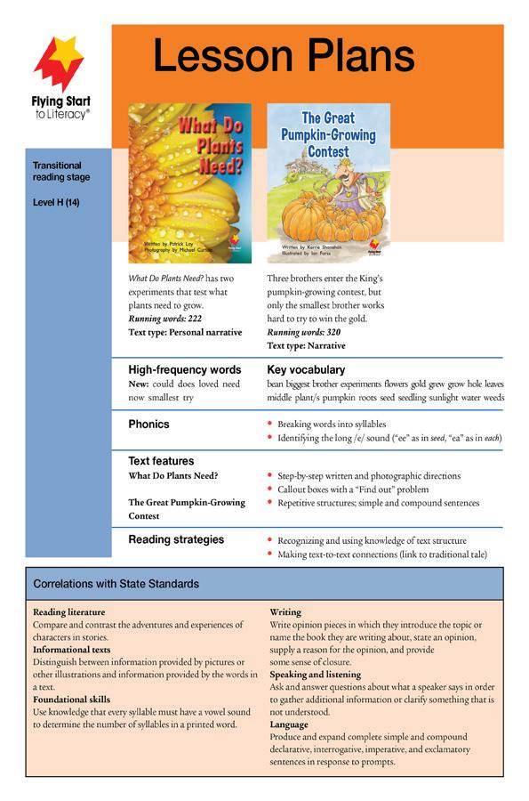 Flying Start to Literacy™ (see pages 21-43) and Despegando hacia la lectura® (see pages 69-89) are paired-text programs for small group reading instruction. English texts in Flying Start are matched title-for-title by their Spanish adaptations in Despegando