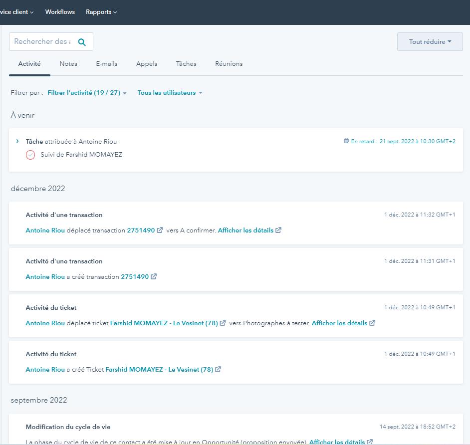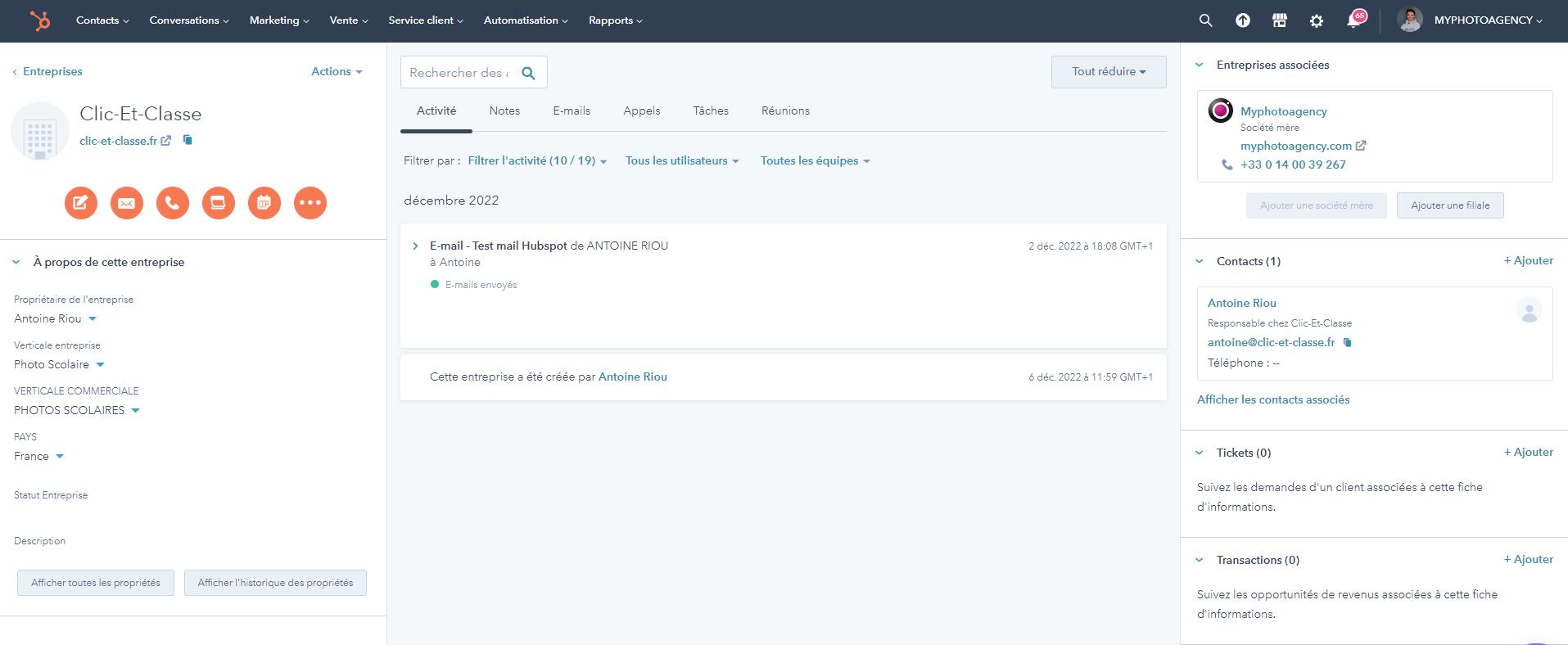 dès que les tests en préprod sont validés, nous basculons officiellement sur Hubspot, terminé l’app photographe (1 outil de moins)