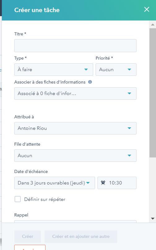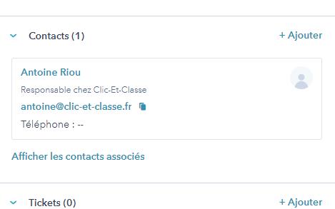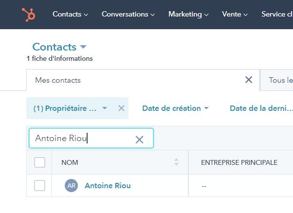 Hubspot, soit il n’existe pas et vous aurez « + Ajouter à Hubspot »