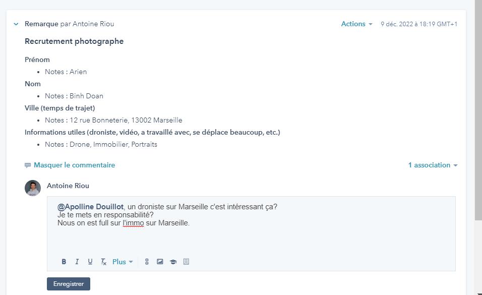 Rédiger un commentaire si besoin. Vous pouvez taguer une personne pour qu’elle reçoive une notification. Cliquez sur « Enregistrer » pour valider votre commentaire.