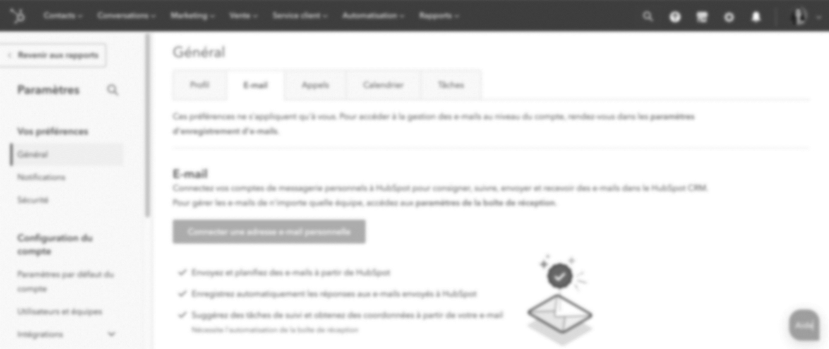 1. Paramétrage des comptes de chaque utilisateur (première connexion ; activation du compte ; mise à jour du profil ; connexion avec Teams ; mise en place du calendrier ; connexion d'Hubspot aux mails + cci) (1h - Equipe production)