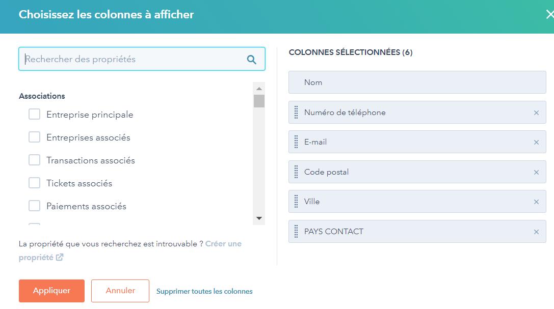 une fois la matrice validée, nous avons mis à jour chaque propriété et champs des espaces : contacts, entreprises, transactions, tickets sur Hubspot