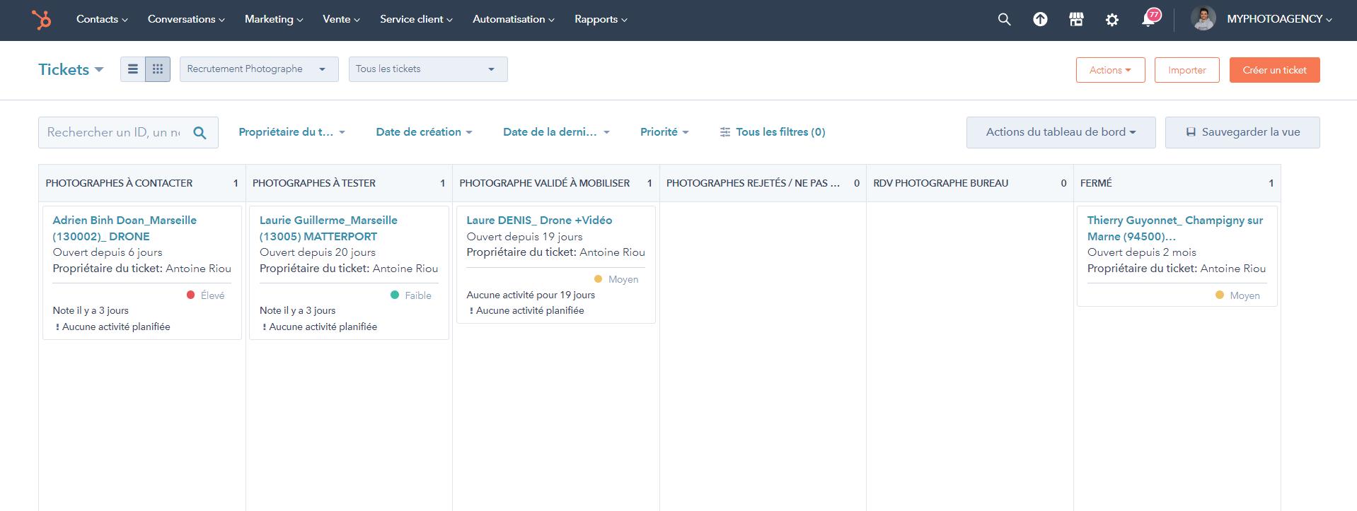 Utilisation des tickets et des tâches pour le recrutement photographe