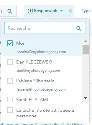 Vérifiez dans le menu déroulant « Responsable » que « moi » est coché pour avoir accès à votre listing de tâches.