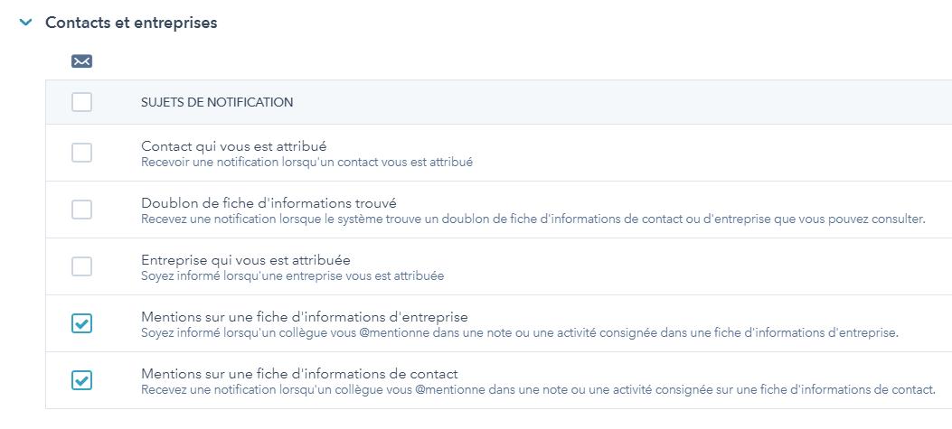 Scrawlez vers le bas puis affichez « Contacts et entreprises » et vérifiez que toutes les options cochées ci-contre sont cochées chez vous aussi.