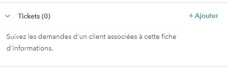 • Chaque section correspond à un type d’association. Par exemple la section « Contacts » correspond à tous les contacts associés aux tickets.