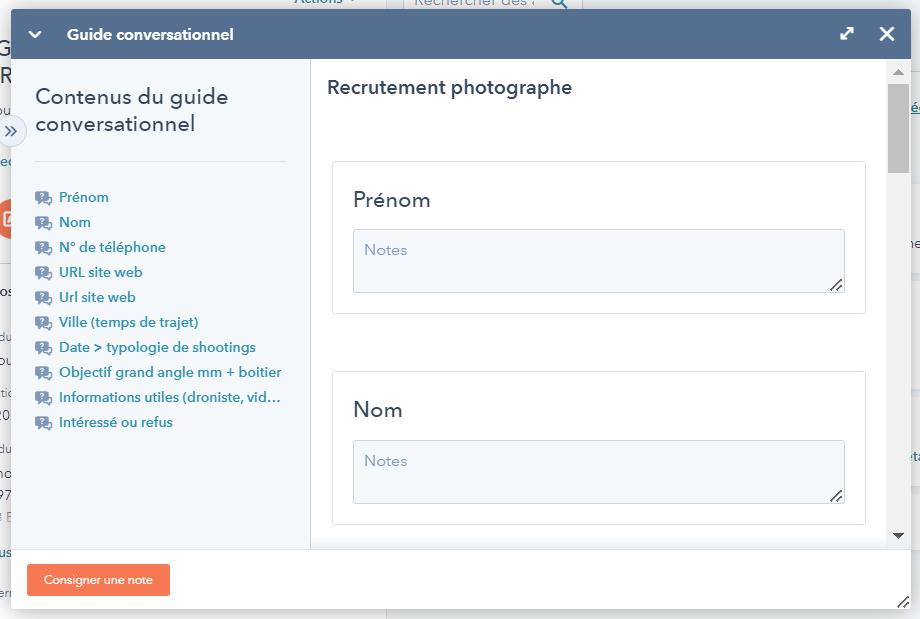 Le « Guide conversationnel » est un outil qui vous permet de compléter un formulaire pour suivre un template de questions/réponses lors de votre phase de recrutement.