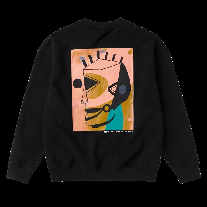 We had the pleasure of collaborating with the talented Dutch artist Joshua van Iersel , known for his explosive and bold style. Inspired by the ancient philosophy of the five classical elements, Joshua created a captivating artwork titled ‘Face of Elements’ . Each symbol representing the elements has been thoughtfully incorporated into the piece. We proudly feature this on our oversized crew sweat, crafted from organic cotton and recycled polyester.
