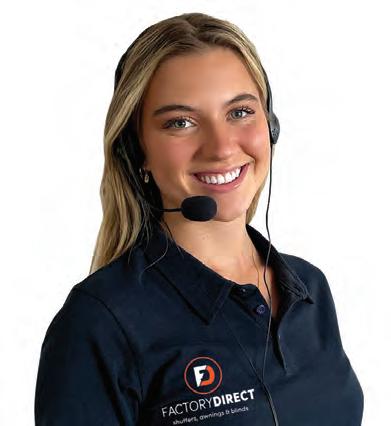 CALL US TODAY ON 1300 077 125 | www.factorydirect.com.au WHY FACTORY DIRECT? Professional service and advice at the best price. And as you see, we have a truly extensive range of shutters, awnings, blinds and curtains. Call and talk to one of your local, friendly team members today. *Offer valid until August 31st 2023. Excludes interest free finance. FOLDING ARM AWNINGS 40%OFF EVERYTHING! SHUTTERS, BLINDS, AWNINGS, CURTAINS & SECURITY! LOCK SHUT SECURITY SCREENS VIVACE ALUMINIUM SHUTTERS CURTAINS ALTO POLYRESIN SHUTTERS ZIPSCREENS TEMPO ALUMINIUM SHUTTERS