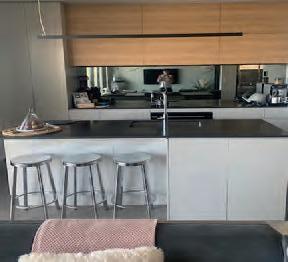 Stone surfaces look great. Pairing them with timber cabinetry or shelving helps soften the look and adds texture.