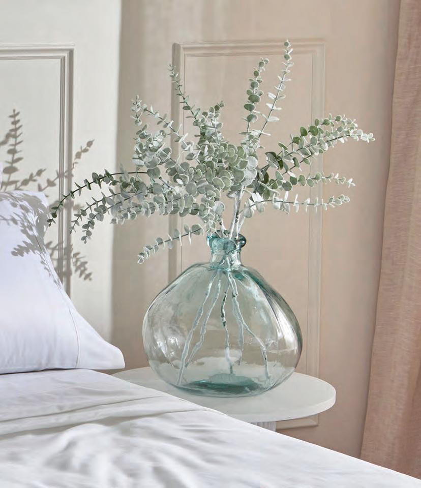 Handcrafted in Spain from recycled glass, the Miguel vase is created from an old glass bottle. Style it with soft, native stems – eucalyptus, banksia or kangaroo paw. It’s from Pillow Talk
