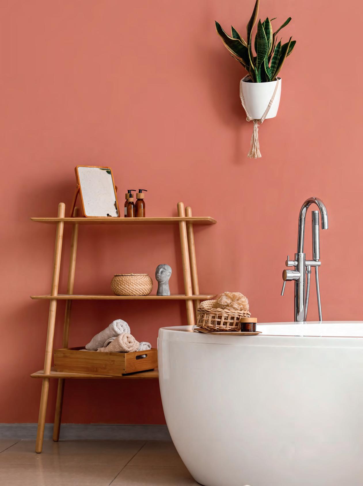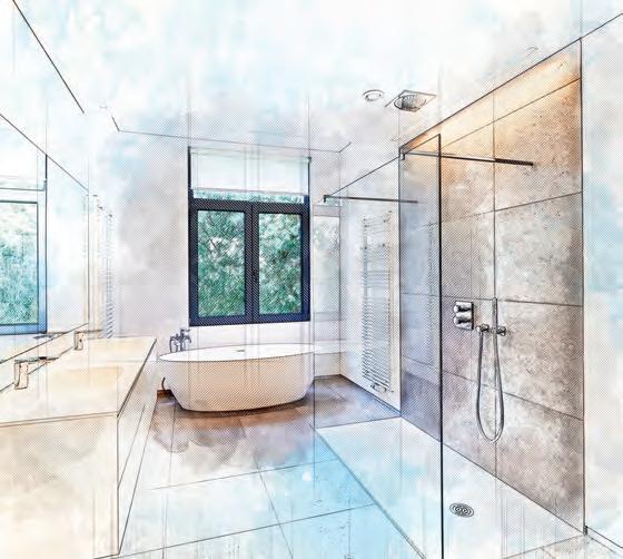 The fi rst step in your path to a better bathroom is to plan your layout. Start by assessing the available space and plan the layout accordingly. Think about the placement of fi xtures like the toilet, sink, shower and bathtub. Consider durable and moisture-resistant materials like ceramic or porcelain tiles for the flooring. Waterproof and easy-to-clean wall materials are also essential for a bathroom.