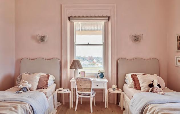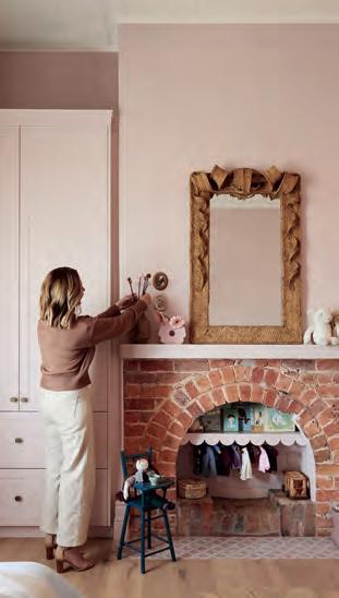 The couple selected neutral accent colours from the palette to complement the dusty pink colour of the walls and skirtings to add detail and interest.
