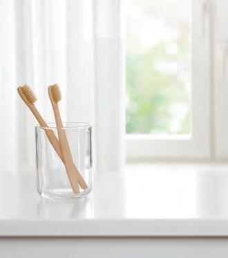 Replace outdated fi xtures like faucets, showerheads and towel racks. Be sure to choose water-ef fi cient options that will stand the test of time and enhance both aesthetics and functionality. We recommend incorporating eco-friendly elements like lowflow toilets, water-ef fi cient fi xtures and energy-ef fi cient lighting to reduce your environmental footprint, and also save money on your bills.