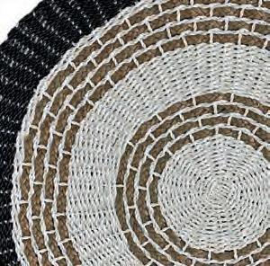 Bring texture and style to your home with the three-toned Mendong round mat from Coastal Drift Home, Mooloolaba. Pictured here in black and natural colours, the mat is handcrafted using rope material.