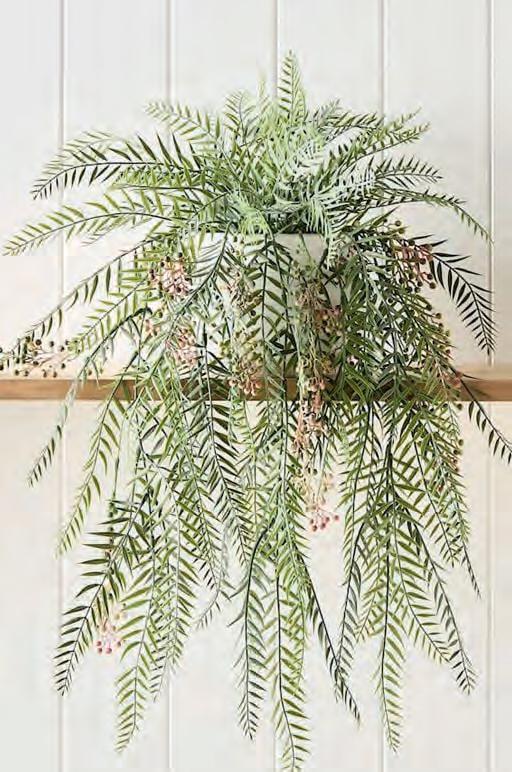 Brighten up your interior space with this faux hanging pepper fern. Style alone or with other cascading foliage and greenery. It will look beautiful in a white or timber pot. It’s from Adairs.
