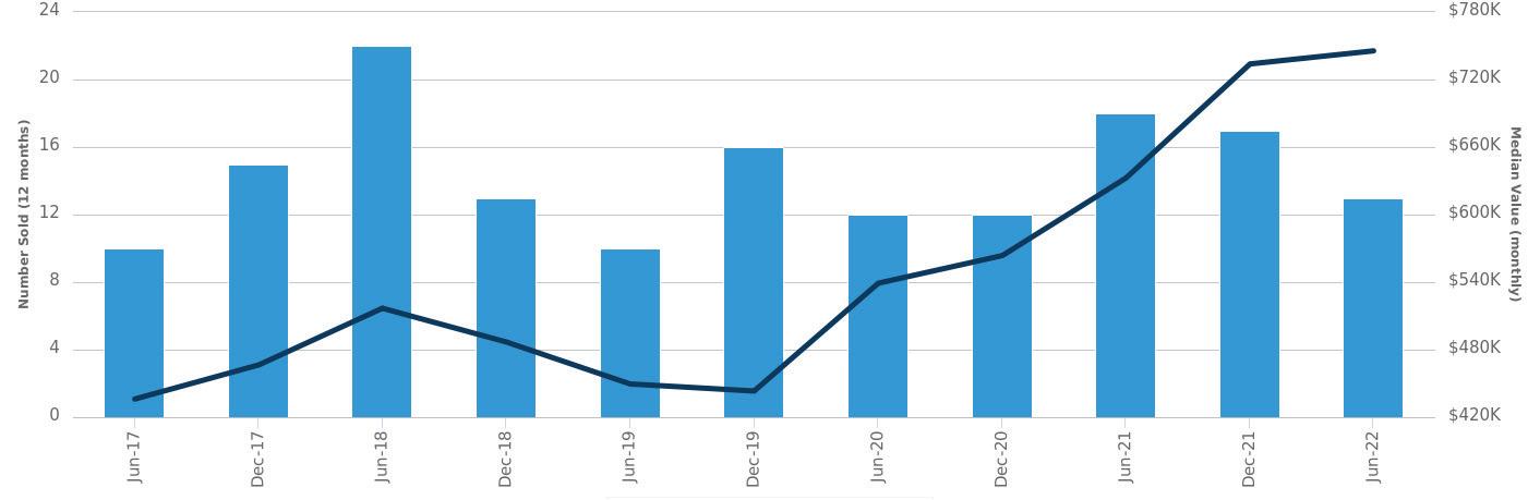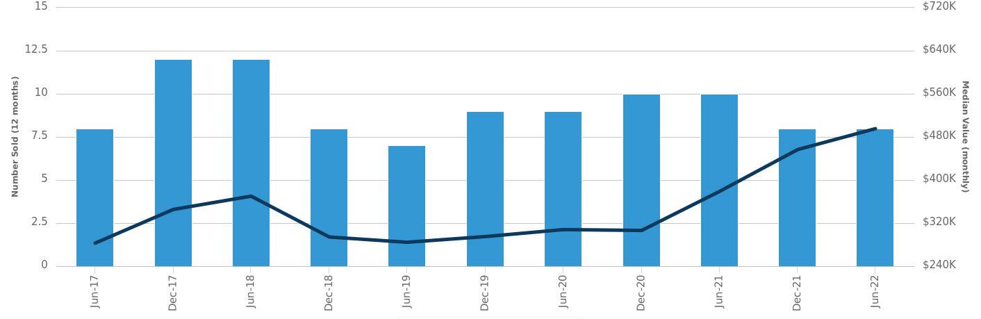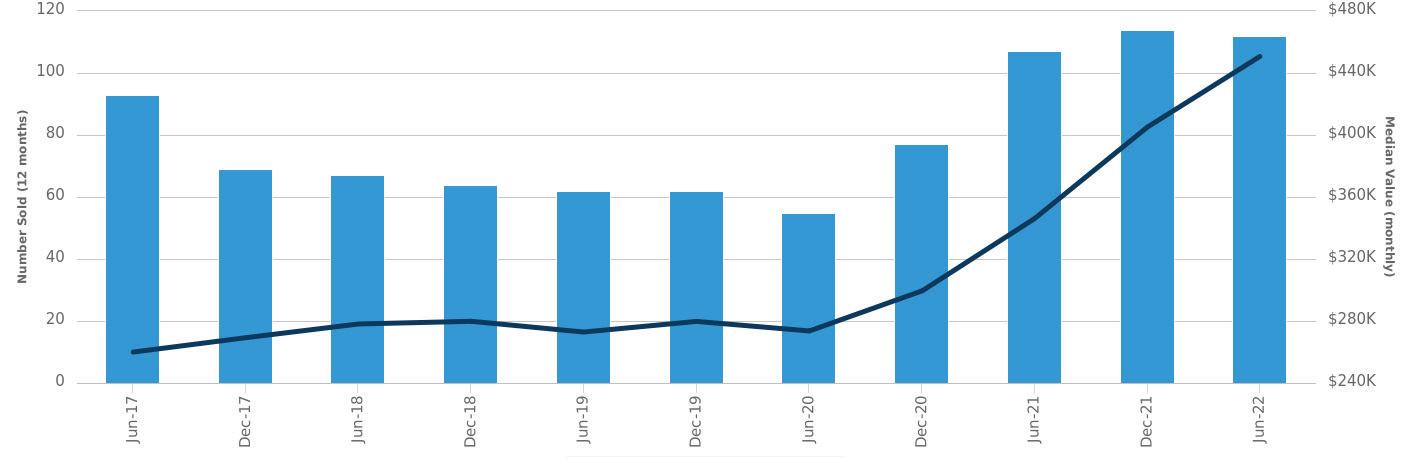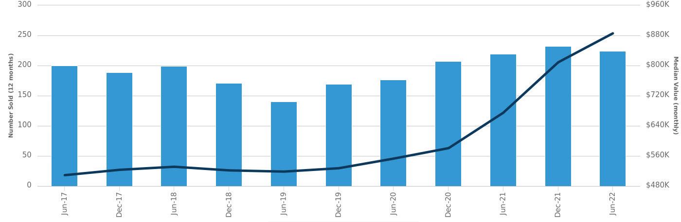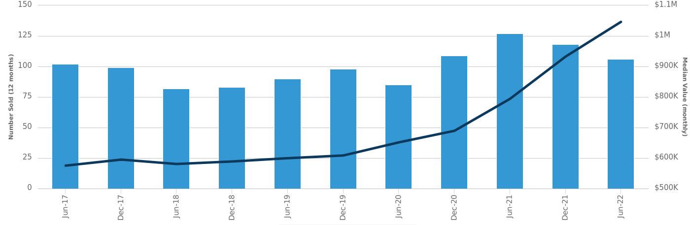 Number Sold (left axis)Median Value (right axis)