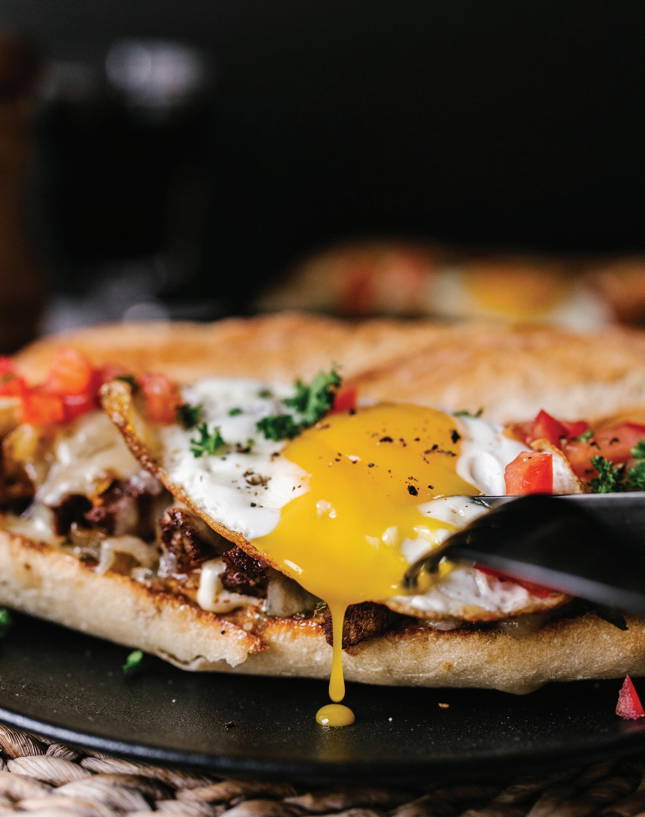 4 myWineLife winter 2023 Open Face Grilled Steak, Fried Egg, and Icewine Caramelized Onion Sandwich Peller Estates Private Reserve Cabernet Sauvignon Peller Estates Signature Series Vidal Icewine Chef Jason Parsons, Peller Estates recipe page 16 SOUP SANDWICH and