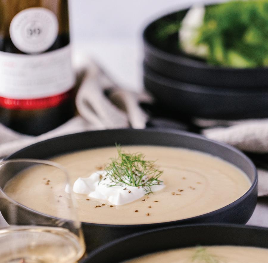 winter 2023 myWineLife 5 Grilled S’mores Croissant Trius Brut Trius Red Chef Frank Dodd, Trius Winery recipe page 17 Roasted Fennel Soup Wayne Gretzky Estates Pinto Grigio Trius Brut Chef Maurice Desharnais, Wayne Gretzky Estates recipe page 16