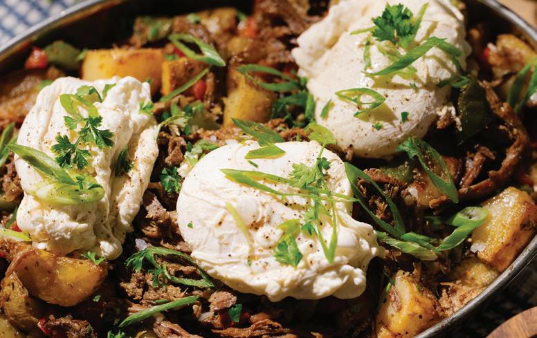Beef Brisket Hash, Chardonnay Poached Eggs